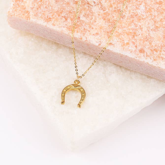 ▴ A mini gold plated horseshoes on dainty gold chain